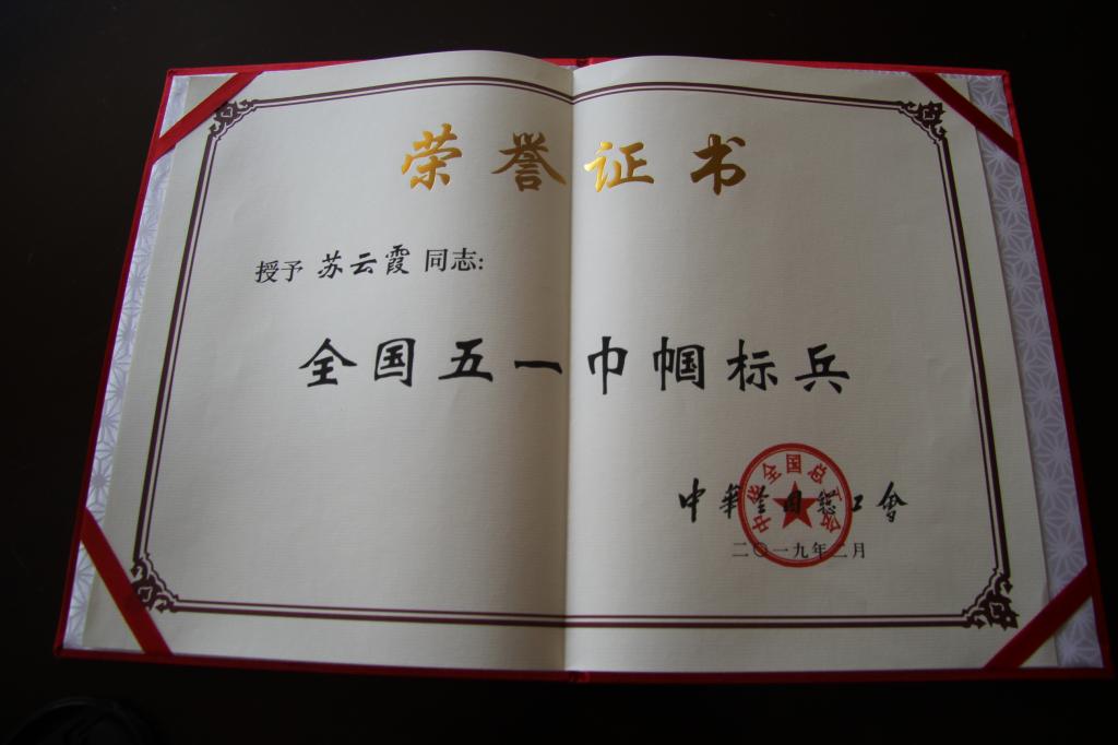 现在,苏云霞同志获得了中华天下总工会授予“天下五一巾帼尖兵”称呼,更是激励了宽大女职工驻足本职、爱岗敬业、追求卓越、争创一流,用生命奏响“中国梦劳动美”的感人乐章。